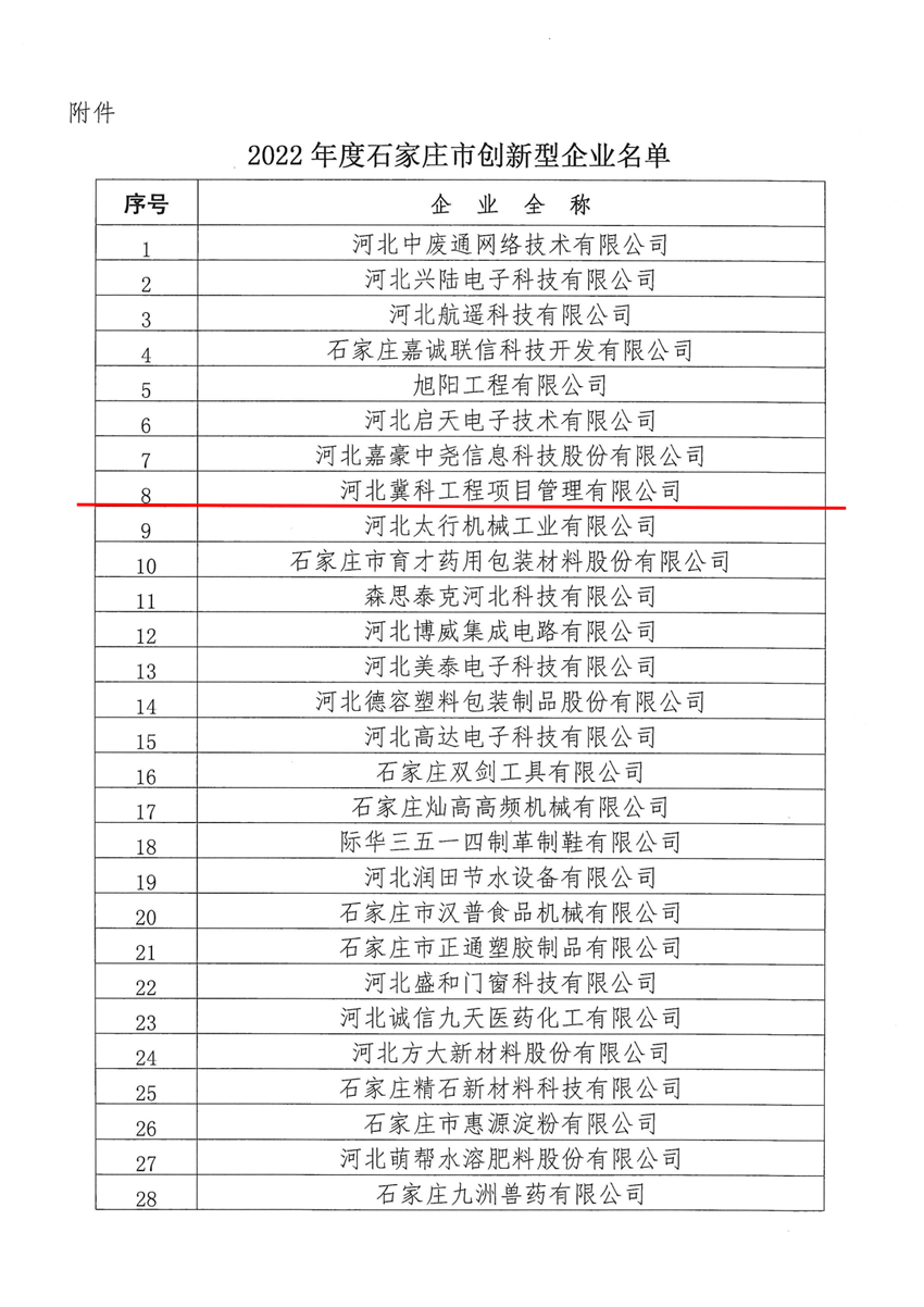 近日,石家莊市科技局、石家莊市國資委、石家莊市總工會下發(fā)了《關于公布石家莊市創(chuàng)新型企業(yè)的通知》,我院冀科公司被認定為石家莊市創(chuàng)新型企業(yè)。